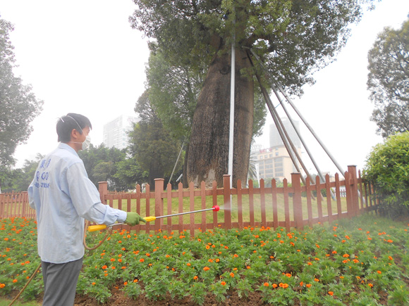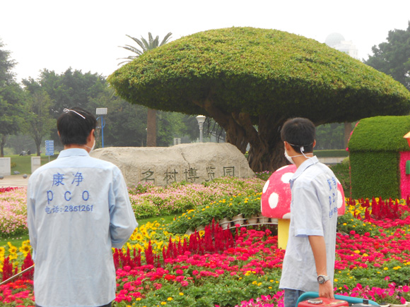 為做好2012年南寧兩會一節(jié)前、中、后部分重點公共場所保障性消殺工作,2012年09月18日至30日在南寧市愛衛(wèi)辦的組織下,康凈公司四個組分別對“南湖南廣場、朝陽廣場、金湖廣場、民歌湖廣場”進(jìn)行加強(qiáng)“四害”消殺工作,圖為康凈公司技術(shù)人員在現(xiàn)場進(jìn)行施工。